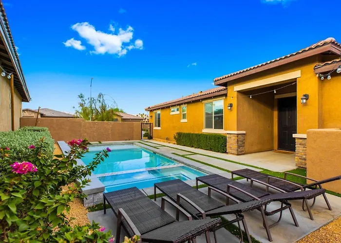 The 2-bedroom 3Bd In Gated Community W Private Pool And Spa Indio villa entices active guests with access to a fitness centre and is located around a 10-minute drive from Indian Palms Country Club.